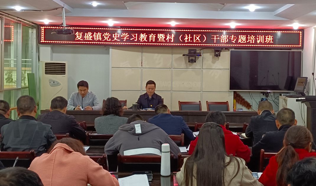 复盛镇按照党史学习教育安排部署,结合做好村(社区)换届选举后半篇文章,自4月14日始举办了为期2天的党史教育专题培训班。