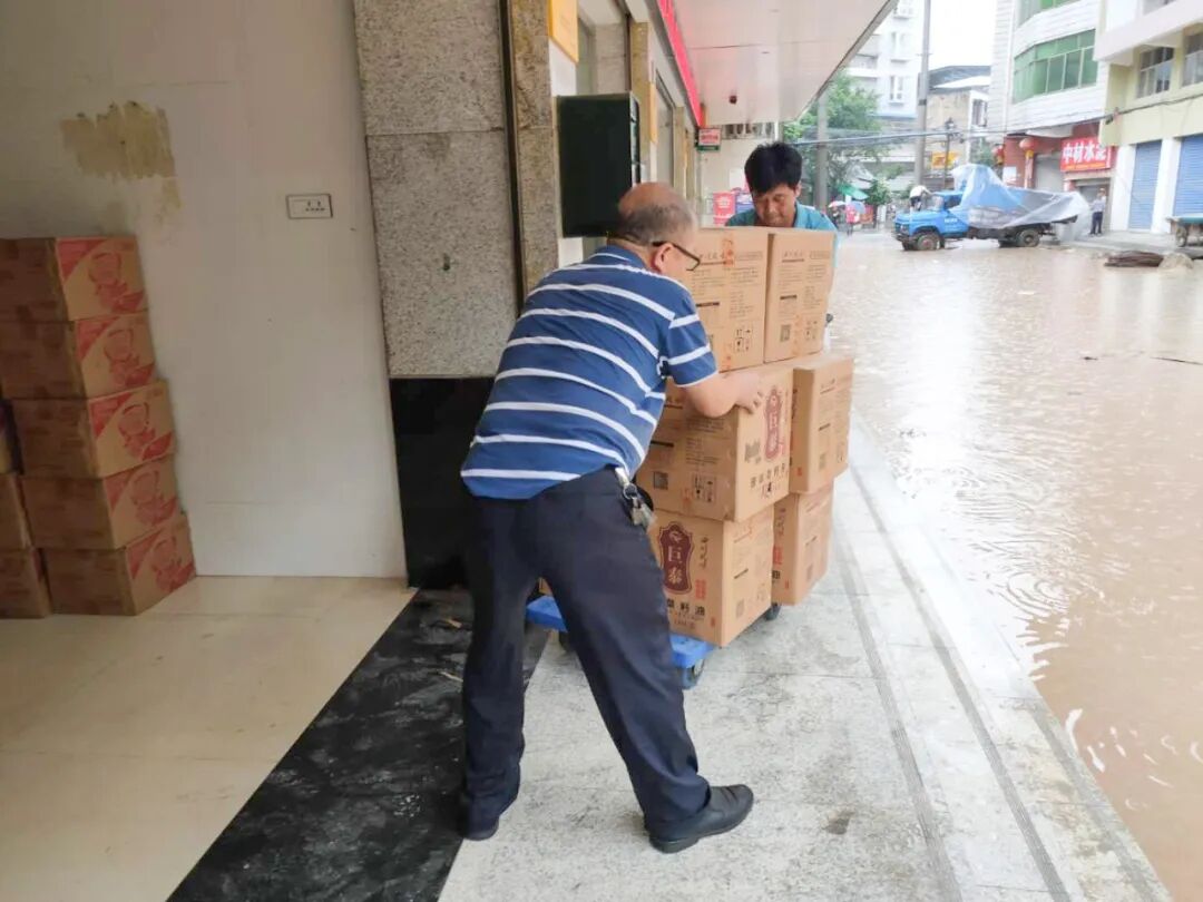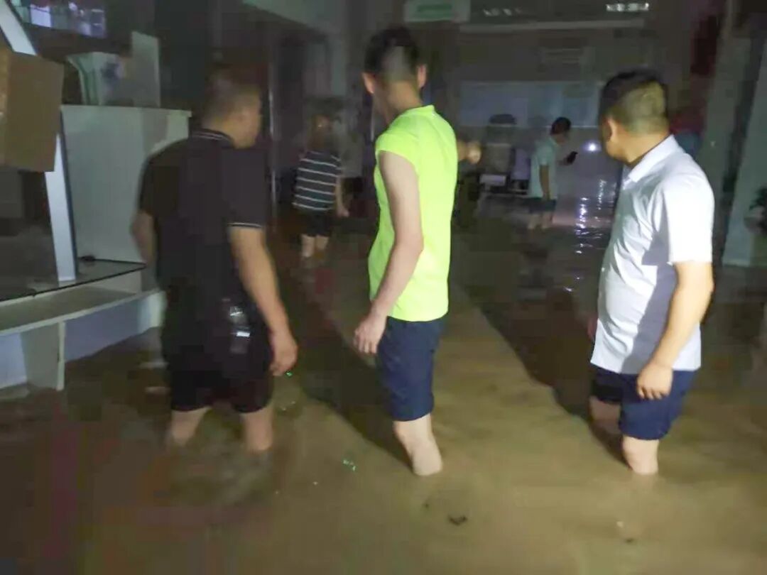 17:00,抗洪小组马不停蹄到达沿河道网点,严阵待命。